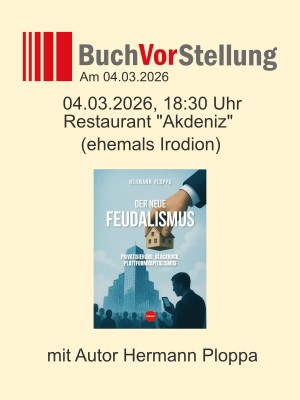 Der NachDenkSeiten-Gesprächskreis Marburg freut sich, am 04.03.2026 den Politologen, Buchautor und freien Journalisten Herman Ploppa für eine Vorstellung seines neuen Buches „Der neue Feudalismus – Privatisierung, Blackrock – Plattformkapitalismus“ begrüßen zu dürfen.