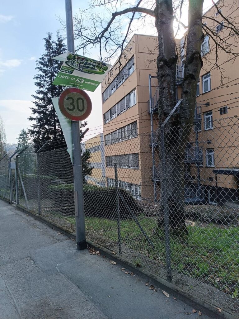 Es geht weiter mit den vielerorts kaum noch vorhandenen Möglichkeiten zum sinnvollen Anbringen von Wahlwerbung. Neben den zahlreichen Reglementierungen begrenzt ein wuchernder Schilderwald die meist einzige Möglichkeit zur „freien Plakatierung“, nämlich Laternenmasten, erheblich. Komplettiert wird diese Enge durch zahllose Poster mit dem dubiosen Hinweis „Abstand rettet Leben – überall (…) 1,50m müssen sein“ – eine verdächtigerweise Anfang 2020 aufgetauchte Dauer-Parole, die möglicherweise nur vordergründig der Verkehrssicherheit dienen soll.
